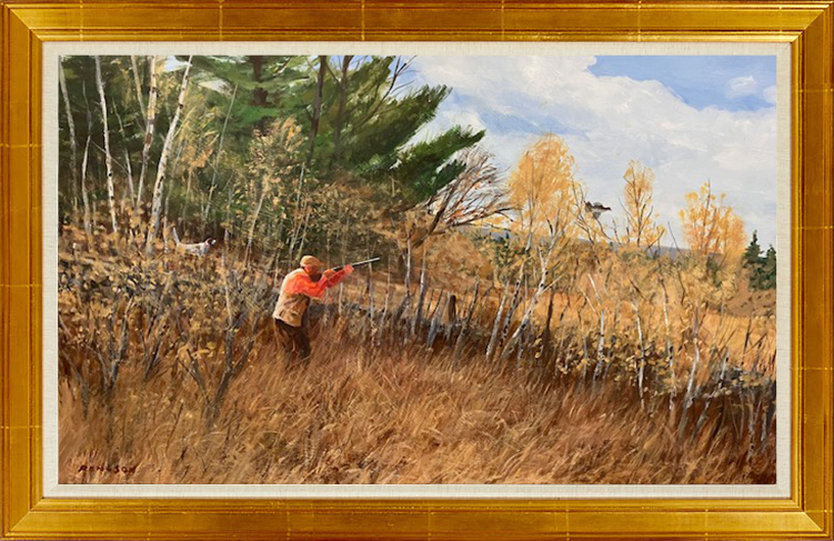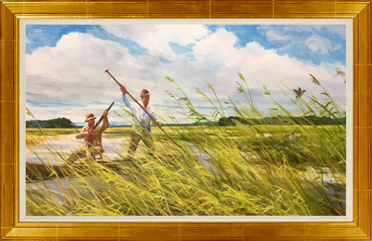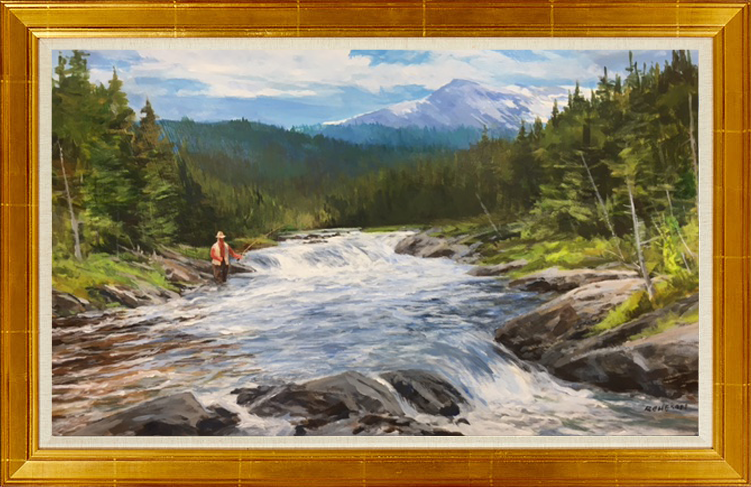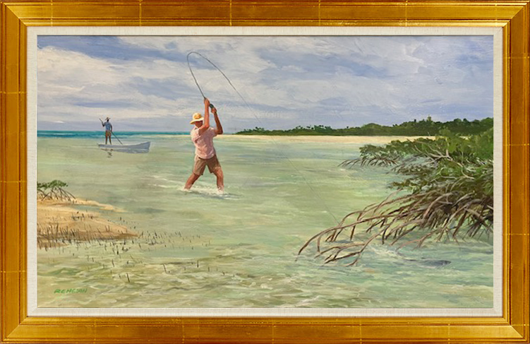 Chet has begun painting acrylics again after many years of concentrating on watercolors. He is exploring the medium, finding it expresses his subjects to a greater degree, and, having fun with it! The acrylics are a larger size than the water colors, 28" x 42" framed.
