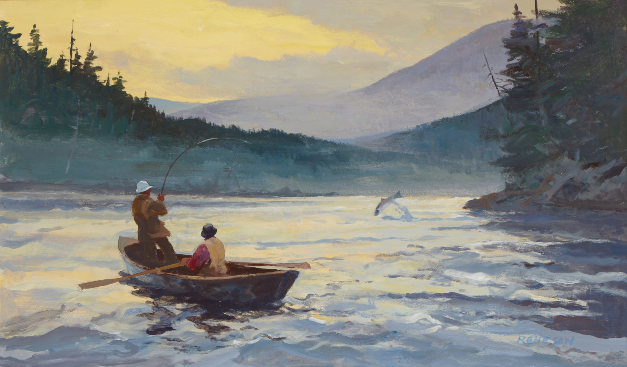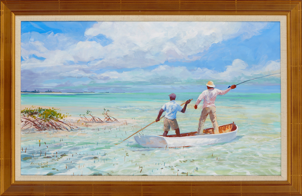 Chet has begun painting acrylics again after many years of concentrating on watercolors. He is exploring the medium, finding it expresses his subjects to a greater degree, and, having fun with it. The acrylics are a larger size than the water colors, 28" x 42" framed. Acrylics