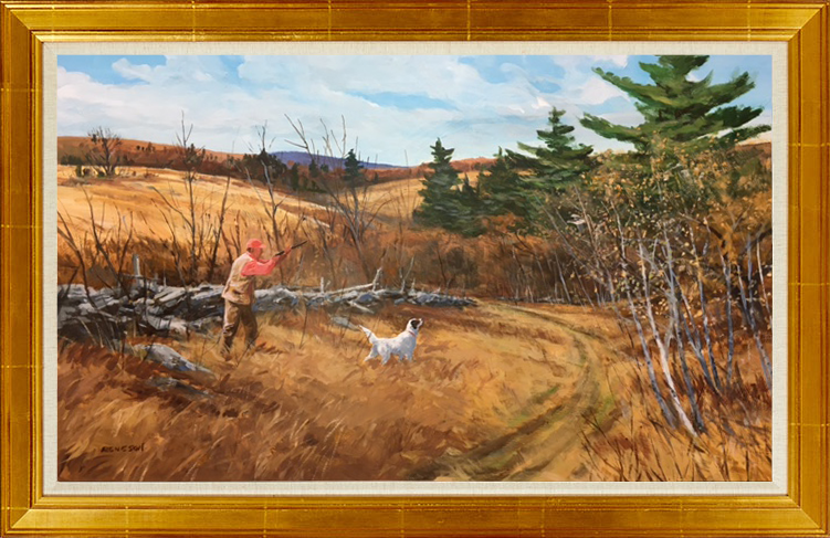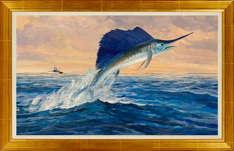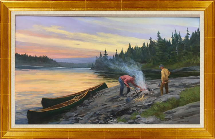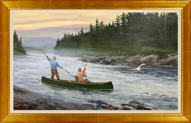 Chet has begun painting acrylics again after many years of concentrating on watercolors. He is exploring the medium, finding it expresses his subjects to a greater degree, and, having fun with it! The acrylics are a larger size than the water colors, 28" x 42" framed.