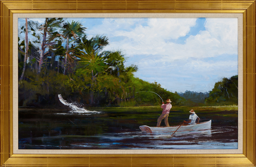 Chet has begun painting acrylics again after many years of concentrating on watercolors. He is exploring the medium, finding it expresses his subjects to a greater degree, and, having fun with it. The acrylics are a larger size than the water colors, 28" x 42" framed. Acrylics